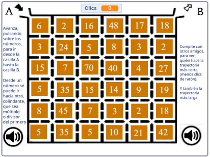 Conforme a nuestra línea de pensamiento, que nos aconseja utilizar el juego como elemento de motivación para la enseñanza de las matemáticas, en Educación Primaria y Secundaria Obligatoria, hemos diseñado, mediante Scratch, una versión online del juego de múltiplos y divisores, considerado en la entrada anterior, también publicada en este sitio Web: