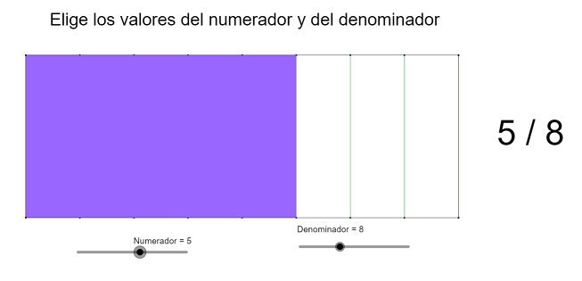 REPRESENTACIÓN DE FRACCIONES PROPIAS EN UN RECTÁNGULO Deja un comentario Una introducción visual al concepto de fracción, realizada con GeoGebra: ACTIVIDAD Compártelo: Haz clic para compartir en X (Se abre en una ventana nueva) X Haz clic para compartir en Facebook (Se abre en una ventana nueva) Facebook Me gusta Cargando... Relacionado
