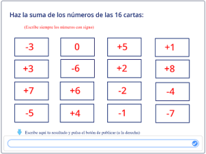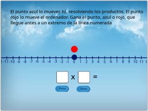 Juego de competición, para practicar el producto de números enteros. Se juega contra el ordenador. El punto azul se mueve de acuerdo con nuestras respuestas. El punto rojo lo mueve el ordenador.