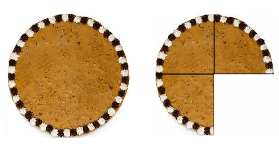La fracción como relación parte-todo puede ser introducida en 3º curso de Educación Primaria (8-9 años). Podemos presentar la fracción, como relación parte-todo, a partir de recursos lúdicos. Por ejemplo, recortando el dibujo de un pastel o de una pizza en partes iguales.