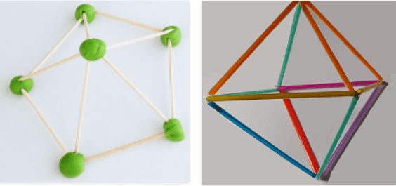 Poliedros con palillos y plastilina Poliedros con cartulina y gomillas