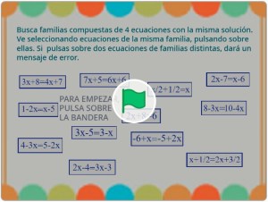 Juego sobre resolución de ecuaciones de primer grado con una incógnita. Es una versión online del juego de cartas planteado por Ana García Azcarate