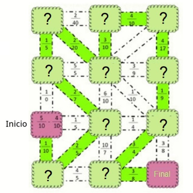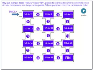 La siguiente actividad puede ser considerada como un juego online, de comparación de fracciones con distinto numerador y denominador. Pueden jugar cuatro jugadores y ser complementaria a los juegos de dominó y cartas introducidos en nuestra sección «Aprende jugando»